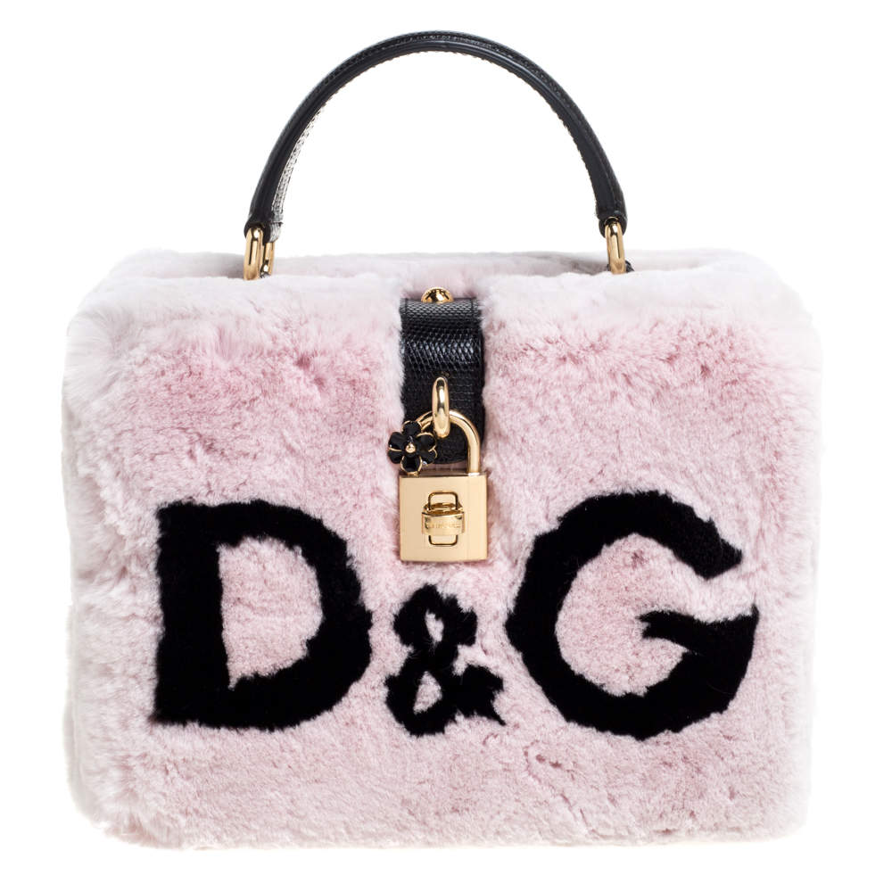 Dolce & Gabbana handbag, pink color, brand logo on one side of the bag, calf leather inside, lapin outside and iguana bag handle, removable crossbody belt.