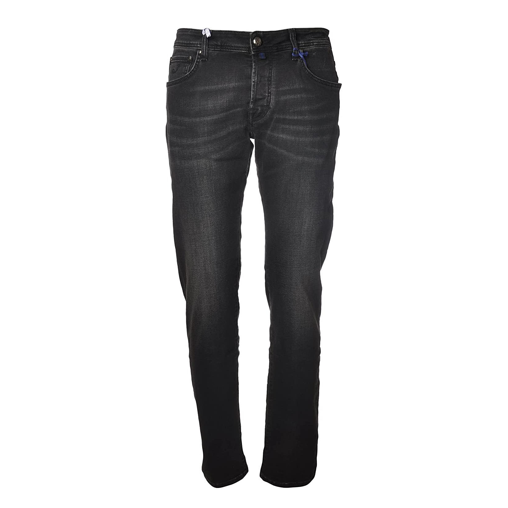 Jacob Cohen 5-pocket jeans, with beige pony skin patch, entirely made of strech canvas, grey-black wash. Made in Italy