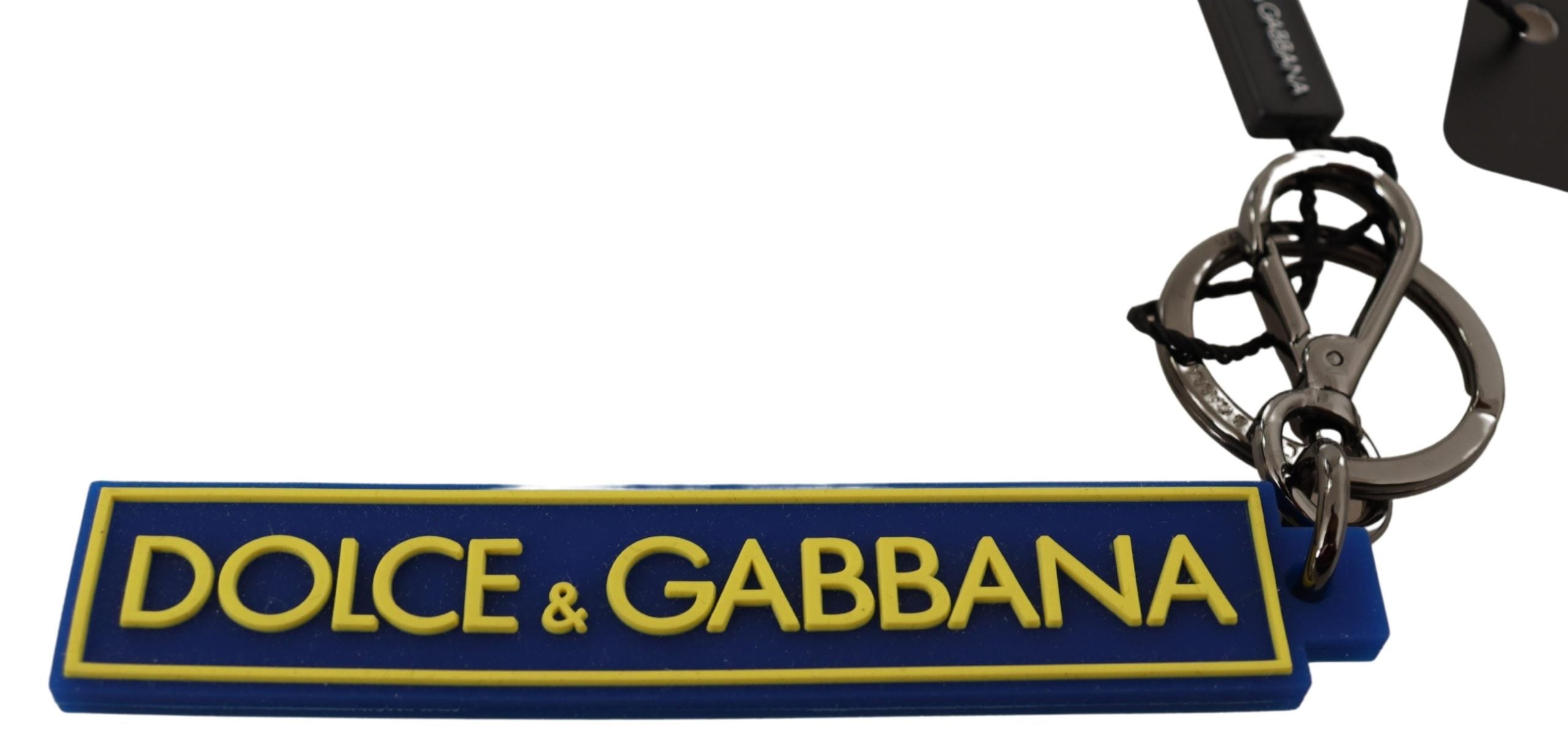 Absolutely stunning, 100% Authentic, brand new with tags Dolce & Gabbana blue keyring. Carabiner closure. Decorated with a yellow logo print.