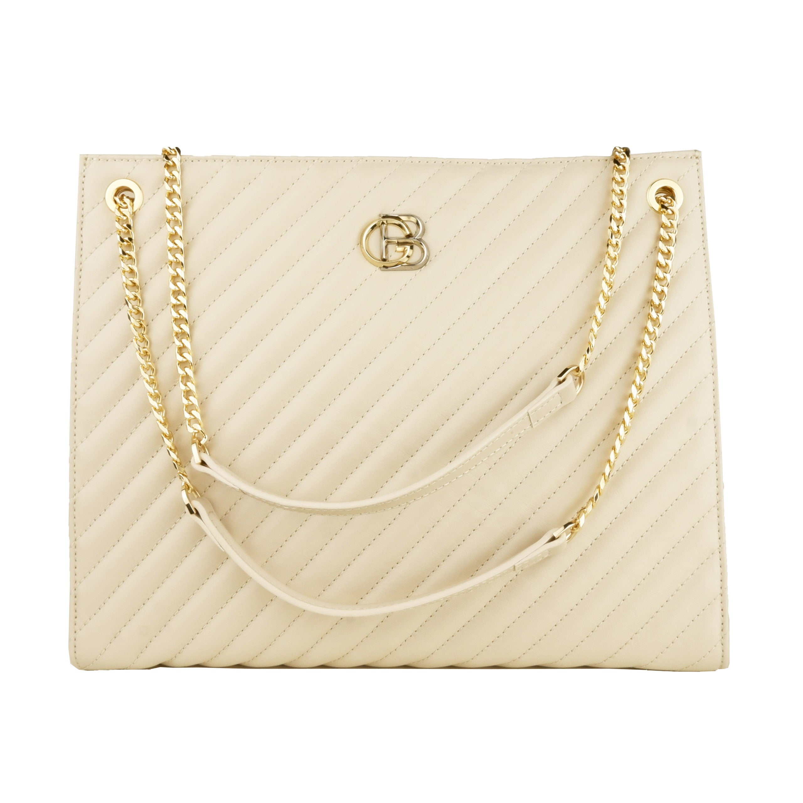 Baldinini shopping bag, beige color, 100% calf leather, adjustable chain handle. Size cm: 33x27x14