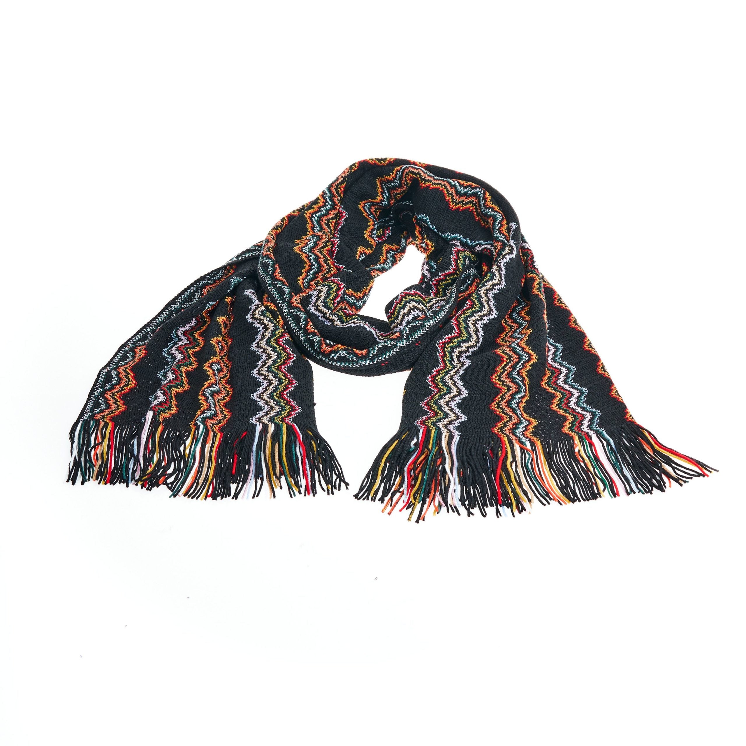 Scarf With Fringes With A Geometric Pattern And Bright Colors! Dimensions: 180cm X 45cm + Fringes