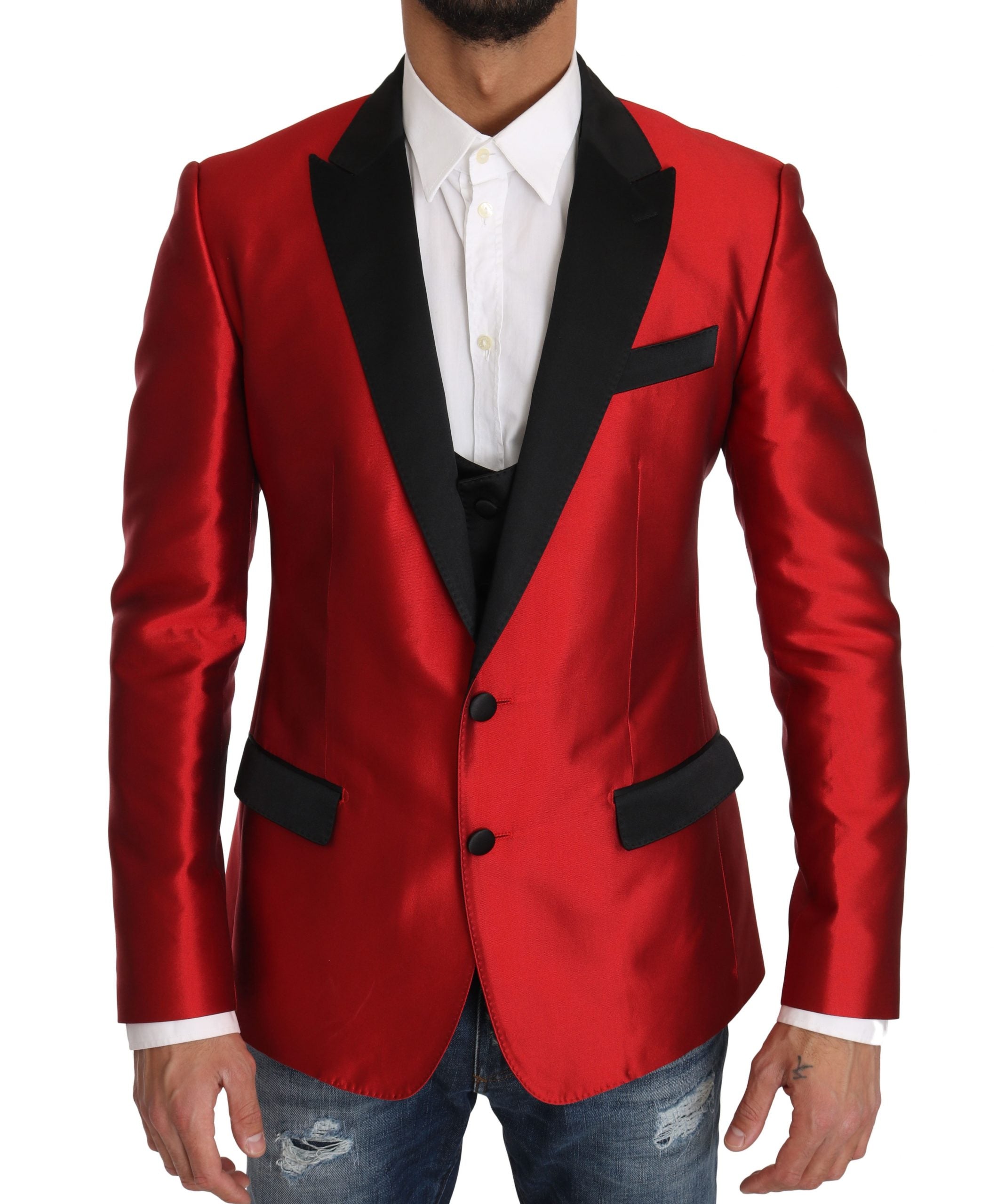 Absolutely stunning, 100% Authentic, brand new with tags Dolce & Gabbana red and black slim fit 2 piece blazer and vest.