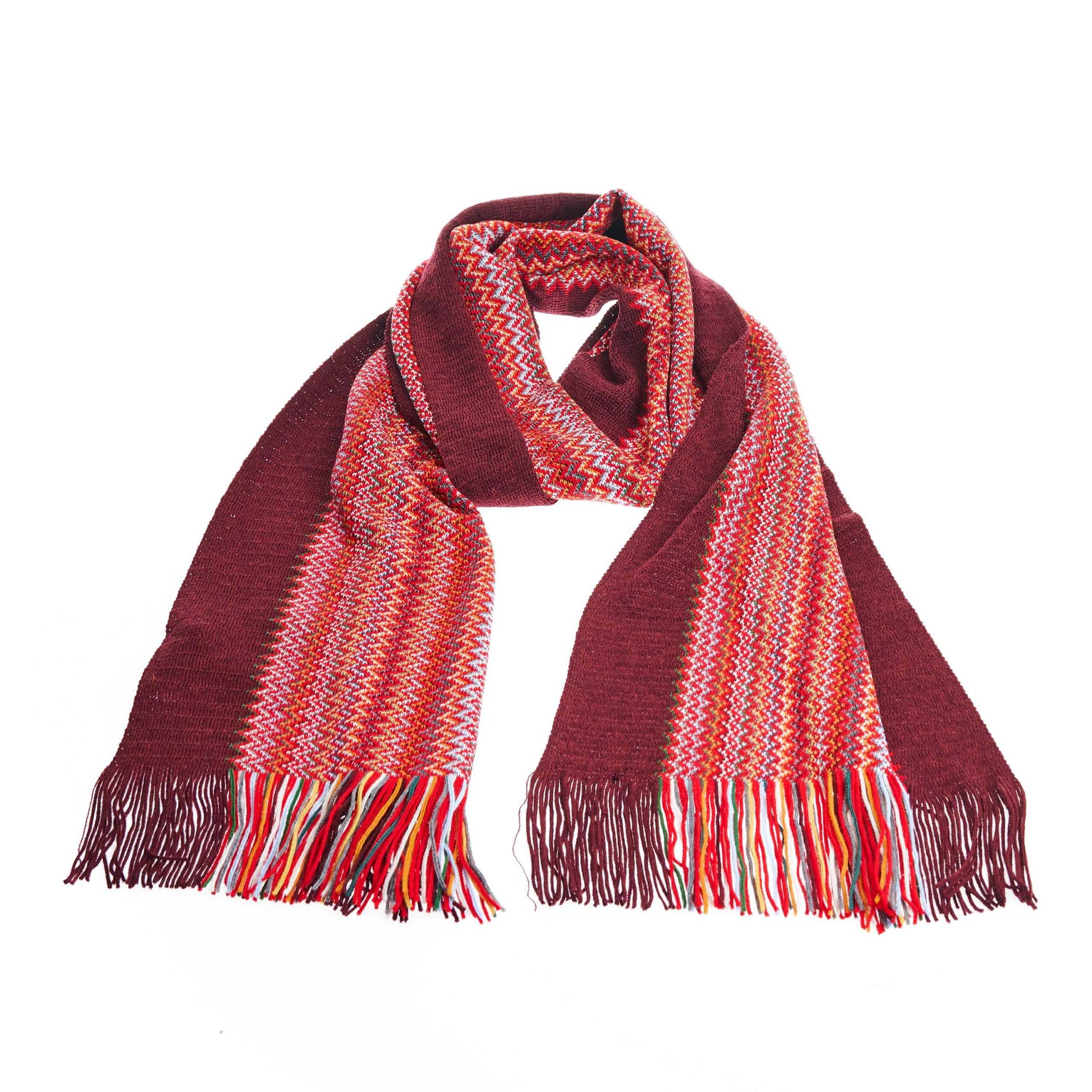 Scarf With Fringes With A Geometric Pattern And Bright Colors! Dimensions: 180cm X 35cm + Fringes